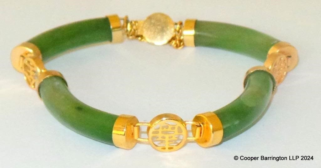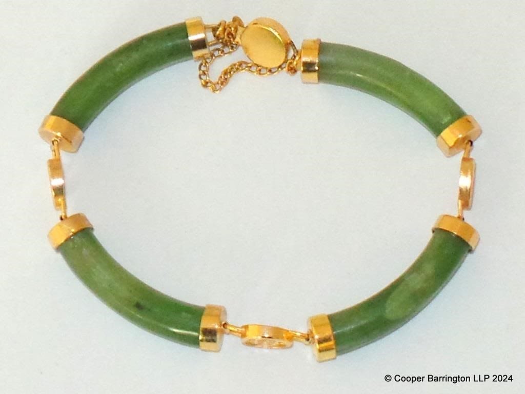 Chinese Gold Plated Green Nephrite Jade Bracelet.