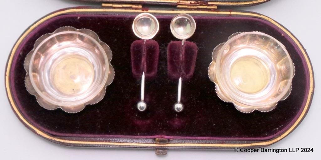 Cased Victorian Sterling Silver Salts Set. Circa 1886....