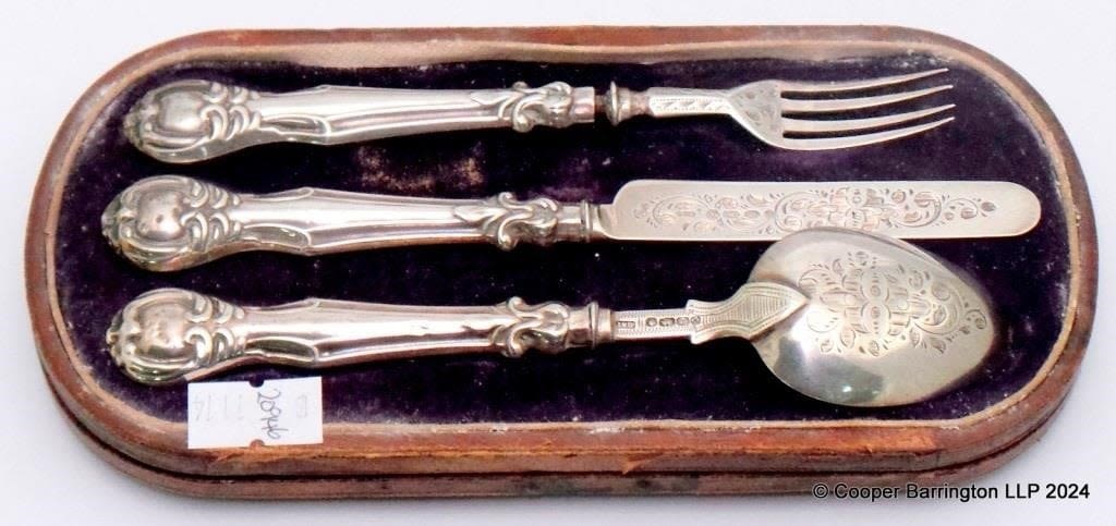 Victorian Engraved Sterling Silver Christening Set by Hilliard & Thomason. Hallmarked Birmingham 1869. (3 Items)