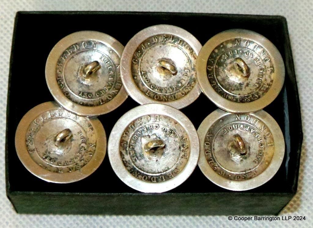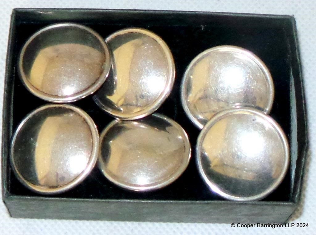 C & J Weldon 130 Cheapside London.Set of Six Livery Buttons – Large Plain Silver Metal . (6 Items)