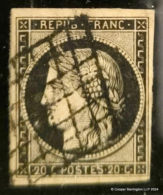 France 1849-50 20c Black Ceres Superb Used Lozenge Postmark. With Philatelics Certificate.