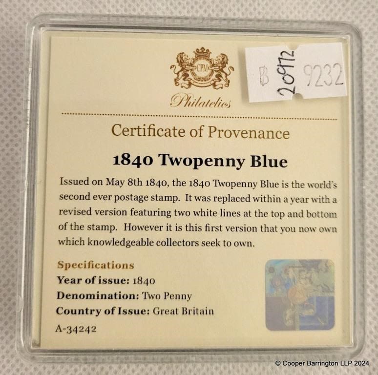 Great Britain 1840 Two Penny Blue Pl 2. DD Blck Maltese Cross Postmark. With Philatelics Certificate.