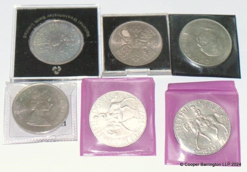 Great Britain QEII Royal Mint Uncirculated Crowns from 1953-1981. (6 Items)