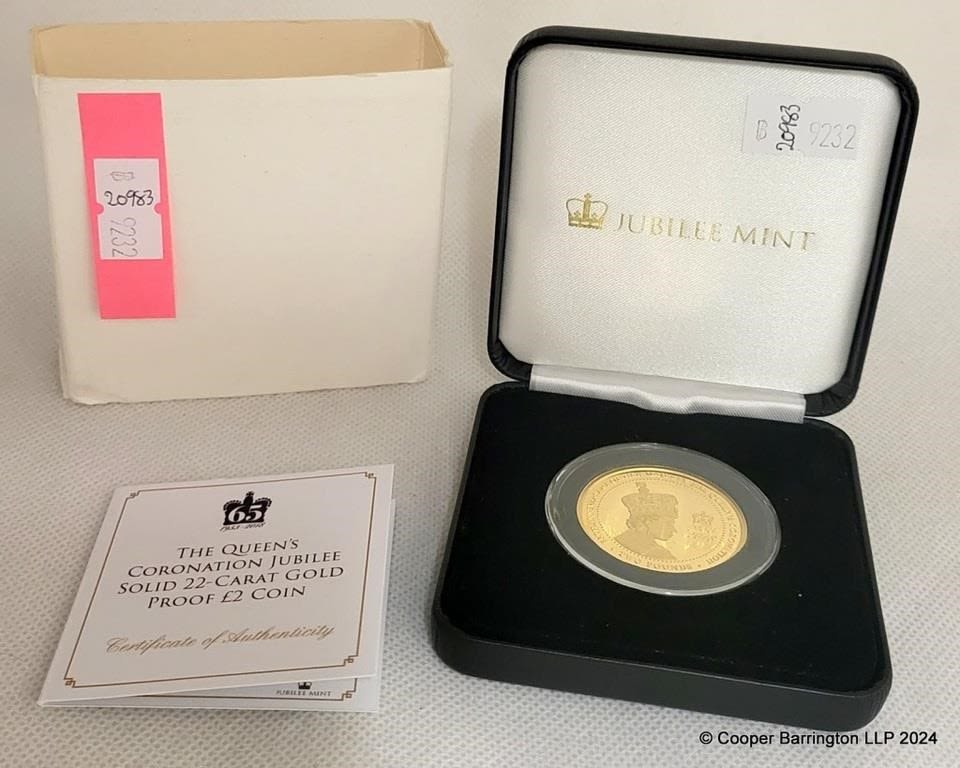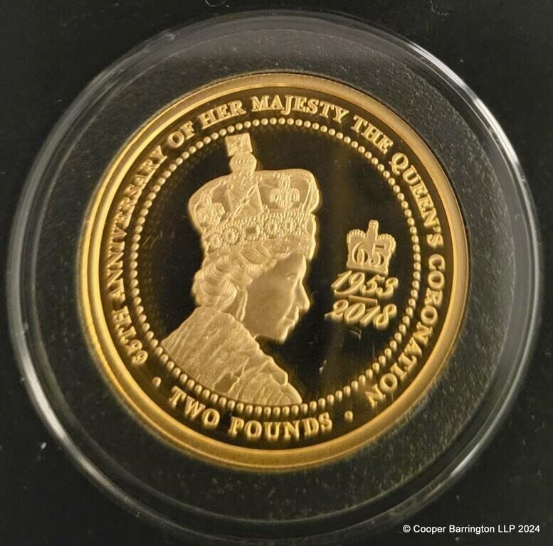 QEll Jubilee Mint 2018 Alderney The Queens Coronation Jubilee Solid Gold £2 Proof Coin. Limited Edition of Only 99. Boxed with COA. (16 gms)