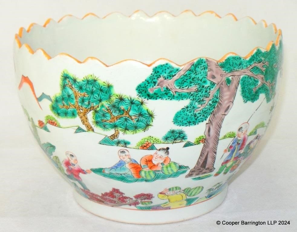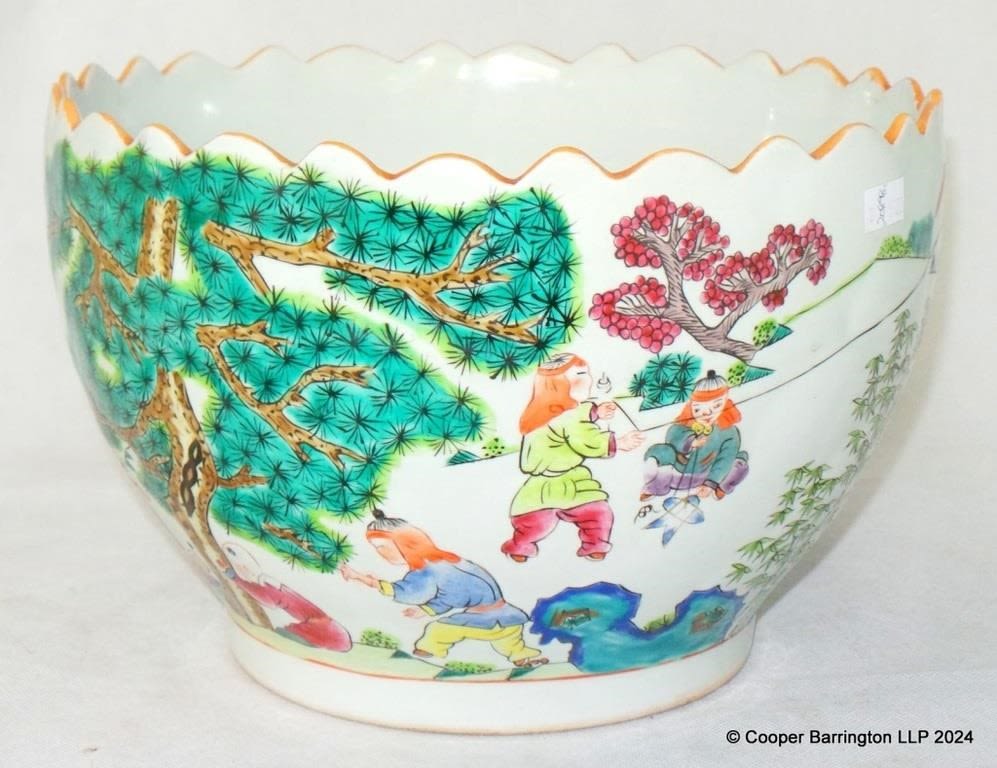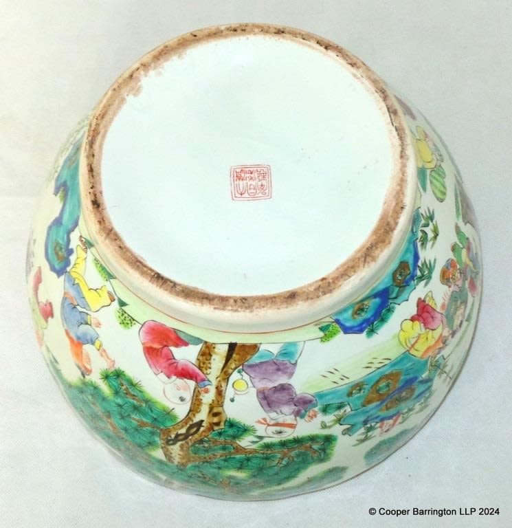 Large Chinese Porcelain Polychrome Painted Jardeniere. Early 20th Century. Diameter 27 cm.