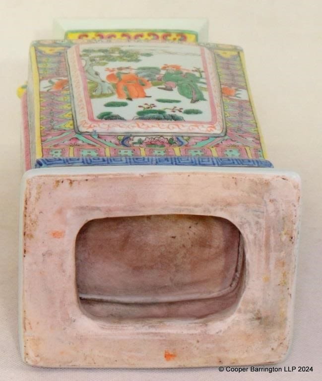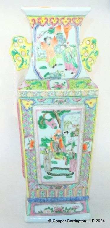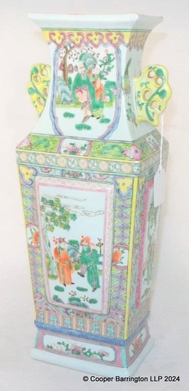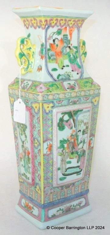 Large Chinese Porcelain Polychrome Painted Square Vase.Mid 20th Century. Height 43 cm.