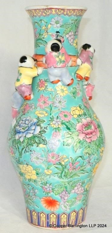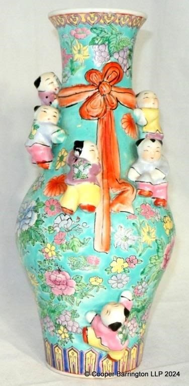 Chinese Seven Boys Fertility Vase Porcelain Hand Painted. 20th Century. Height 37 cm.