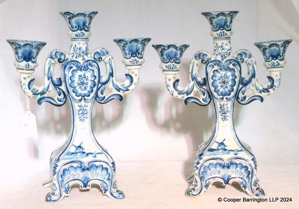 Dutch Delft Blue & White Three Branch Candlesticks....