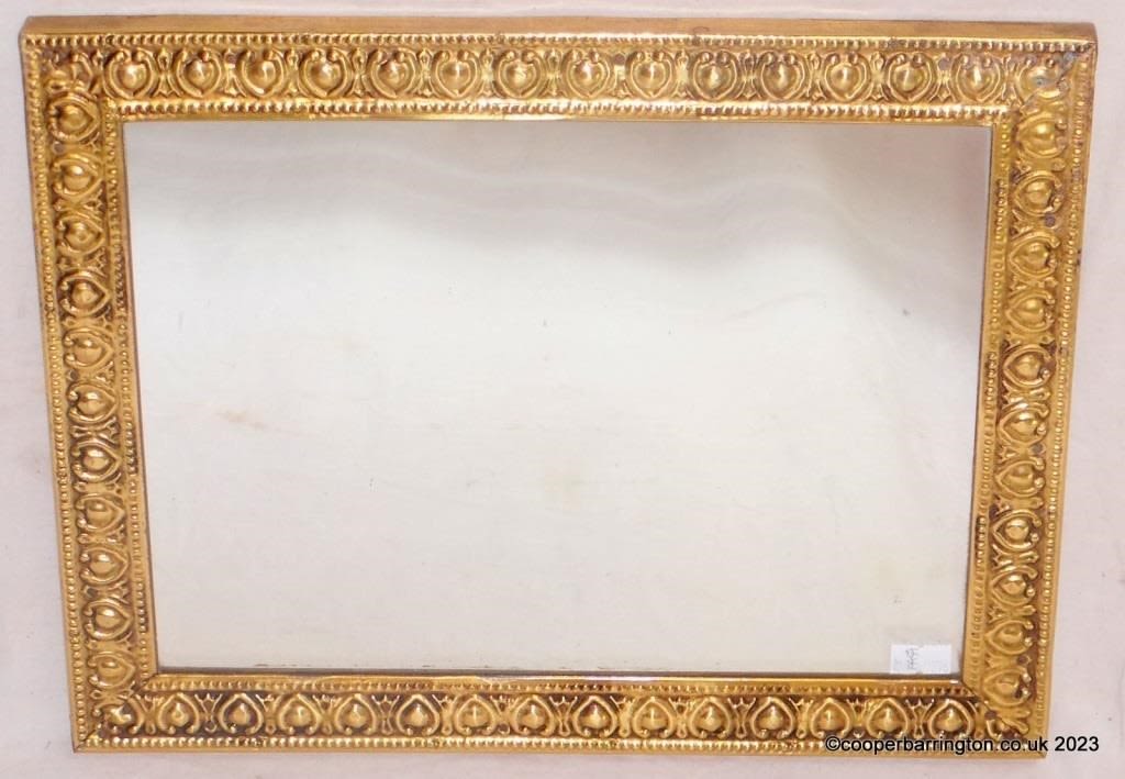 Vintage Linton Embossed Repousse Brass Framed Wall Mirror. Linton label. Mid 20th Century. 35.5 x 28 cm