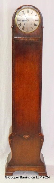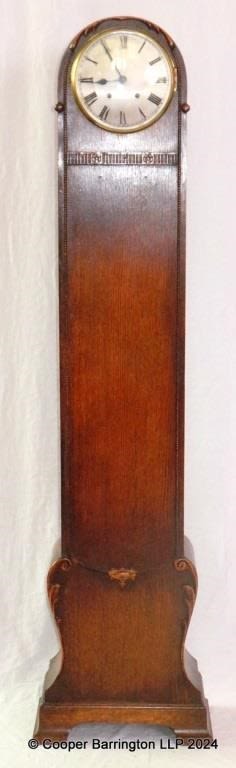 Empire Oak Grandmother Clock. Early 1900s. Complete with key. Height 54in & Dial Dia.7in.
