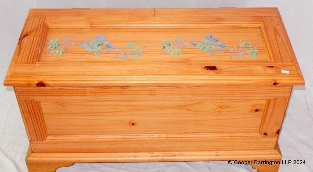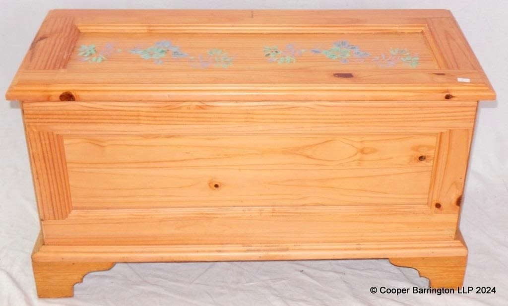 Vintage Pine Coffer with Decorated Lid. 20th C.