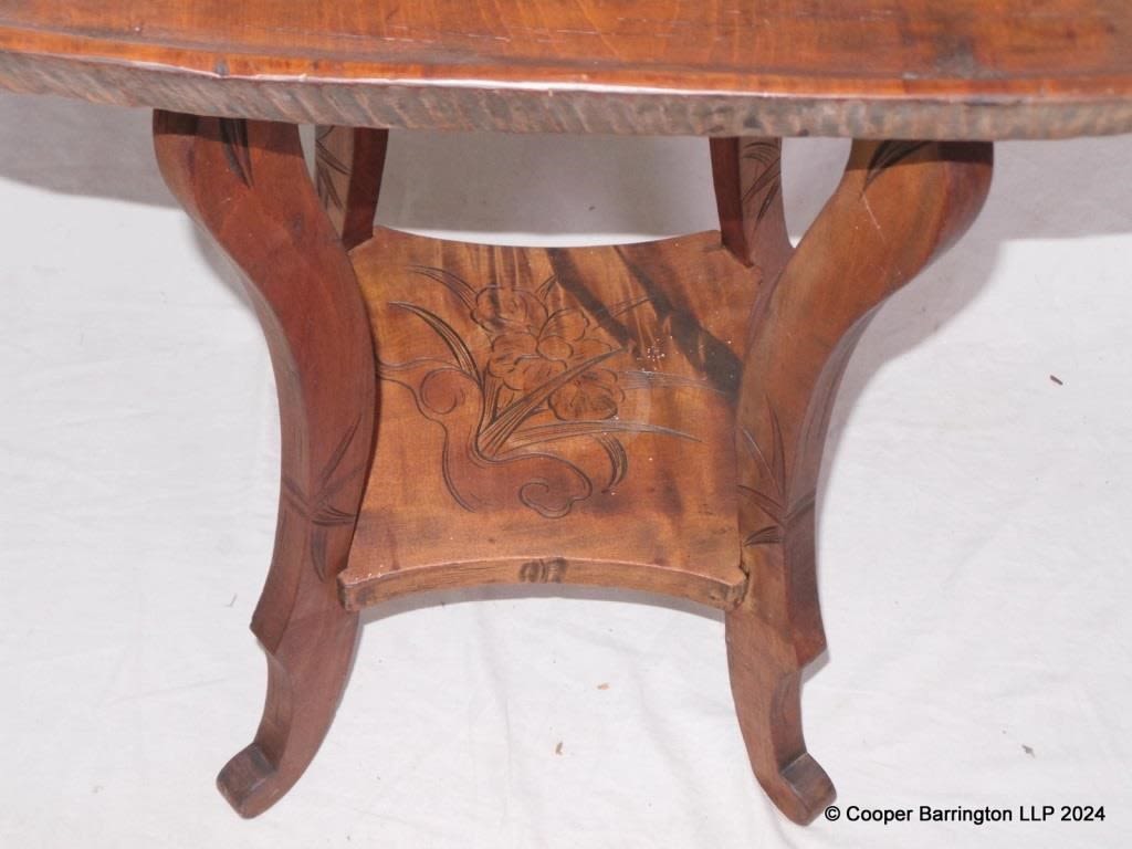 Vintage Asian Carved Hardwood Side / Lamp Table. 20th Century. The shaped carved top raised on cabriolet legs linked by an undershelf. Height 26in. Width 17in. Depth 17.5in.