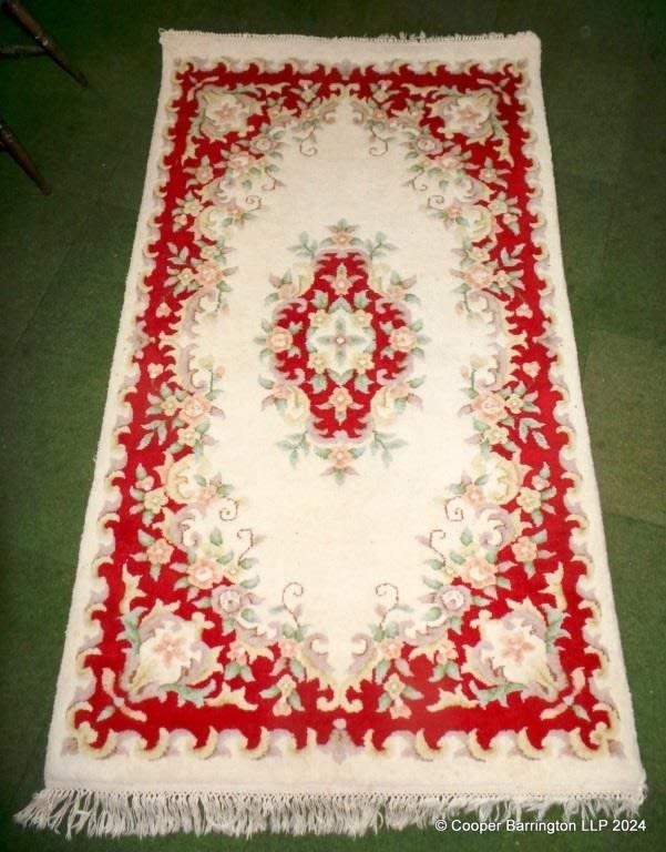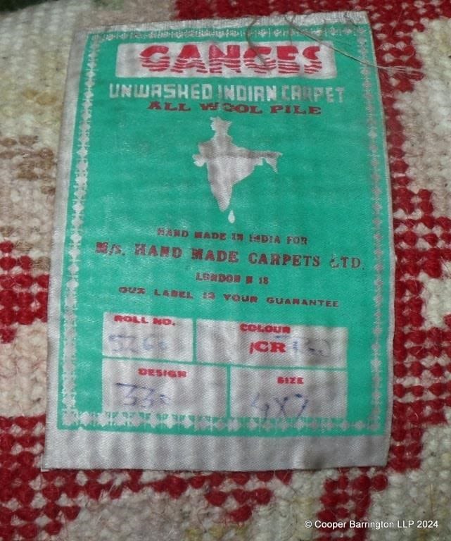 Ganges All Wool Indian Carpet Cream/Green/Red. 220 x 126 cm