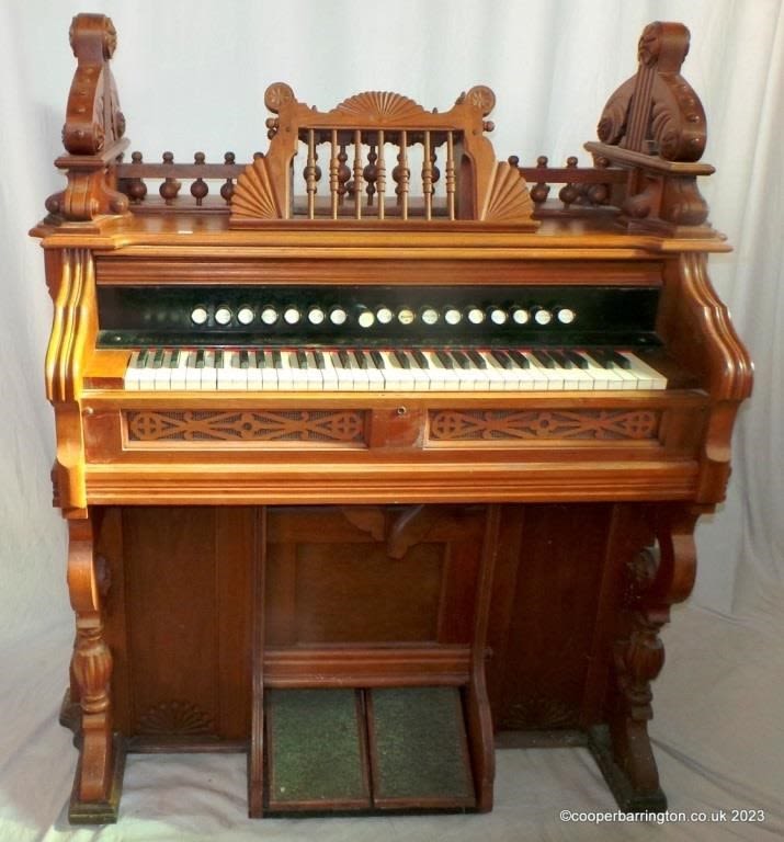 Victorian Chicago Cottage Organ Company Pedal Organ. Late 19th Century. Supplied by Canterburys 56&57 Wyle Cop,Shrewsbury. Height 54 in. Width 46 in. Depth 26 in.
