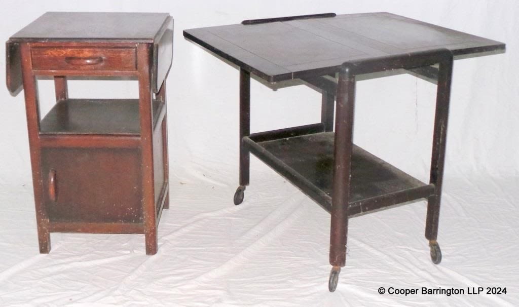 1930s Beside Cabinet with Dropleaf Top and a Dropleaf Top Serving/Drinks Trolly. (2 Items)