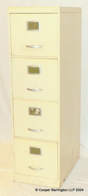 Military Metal Four Drawer Filing Cabinet Painted White....