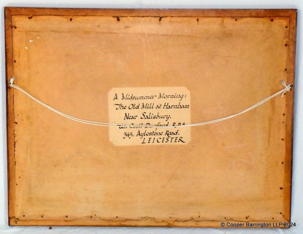 W. Cecil Dunford RDS FRSA (1885-1969) – Watercolour Painting ‘The Old Mill and Water Meadows West Harnam Salisbury’. Signed and Dated W.Cecil Dunford Harnham lower left. Title to verso. Oak framed under glass 67 x 51.5 cm.