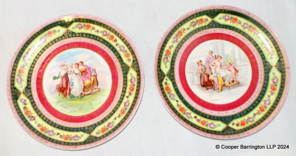 A Pair of Antique Victoria Carlsbad Austria Signed ‘Kaufmann’ Wall Plates/Chargers. Early 1900s. Diameter 30 cm. (2 Items)