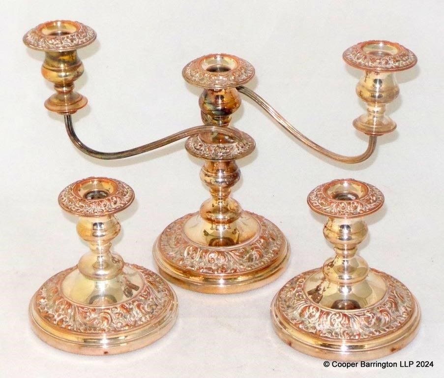 Sheffield Silver Plate Candlesticks. Early 1900s. (3 Items)
