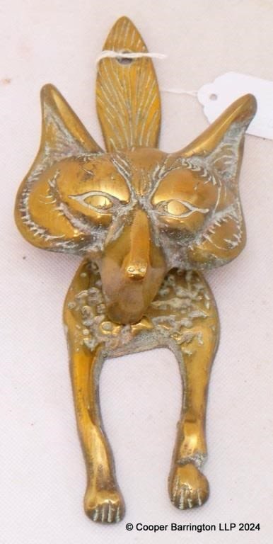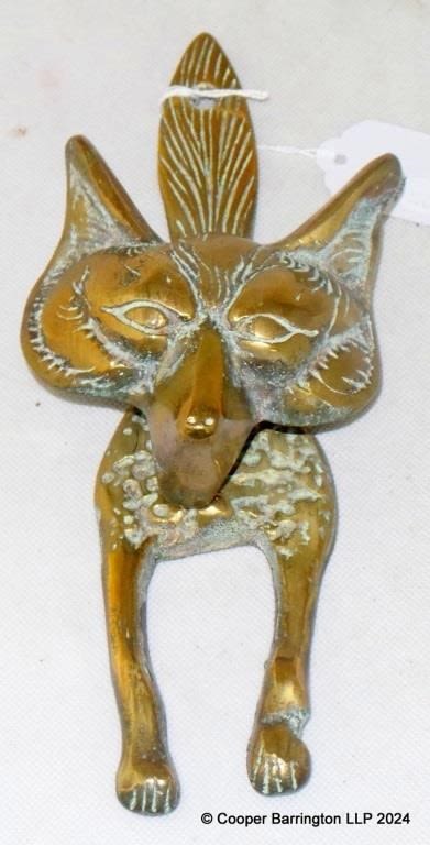Vintage Brass Fox Door Knocker. Length 26 cm.