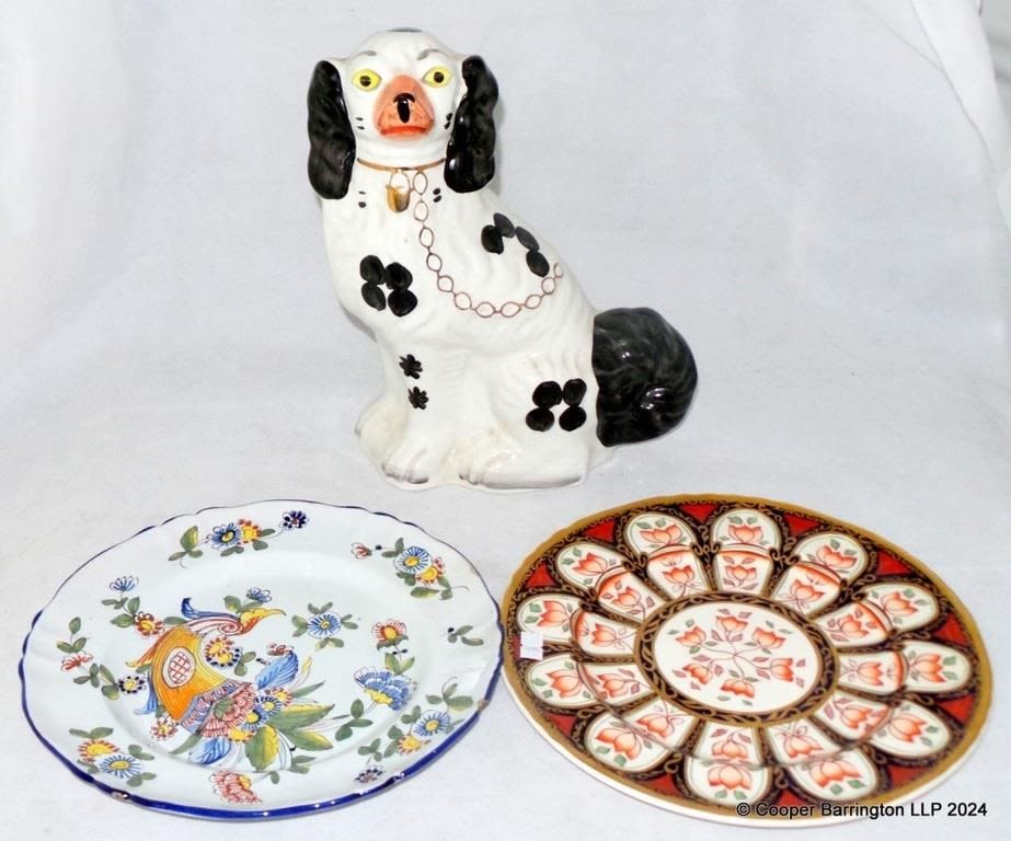 Masons Ironstone Masterpiece Series Cabinet Plate.Limited Edition 2500. Dia.26.5 cm. Vintage Arthur Wood Staffordshire Wally Dog Height 30 cm. and a Keller & Guerin French Luneville Faience Plate. Dia.25 cm. (3 Items)