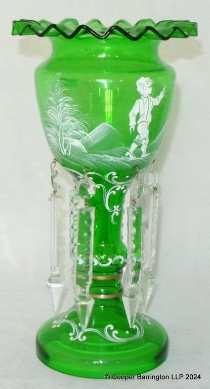 A Mary Gregory Design Green Glass Lustre. Height...