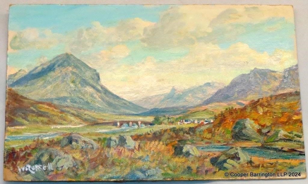 William Russell MA (Scotland 20th century) Oil on Board Marsco Nr. Sligachan (Skye). Signed W.Russell lower left. Title to Verso. Unframed 35.5 x 22 cm.