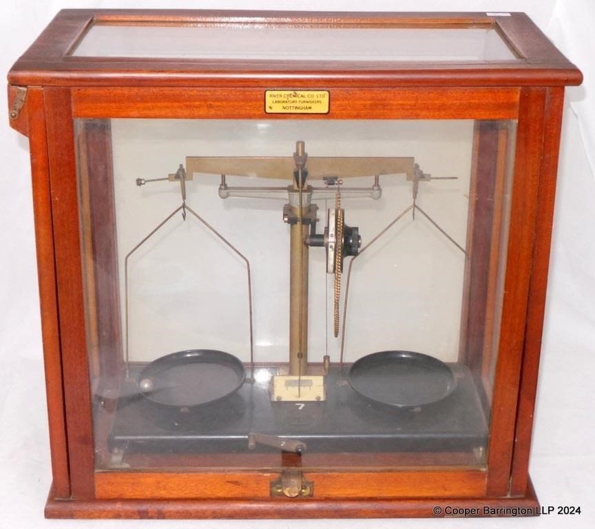 River Chemical Co.Leicester Mahogany Cased Laboratory Scales.