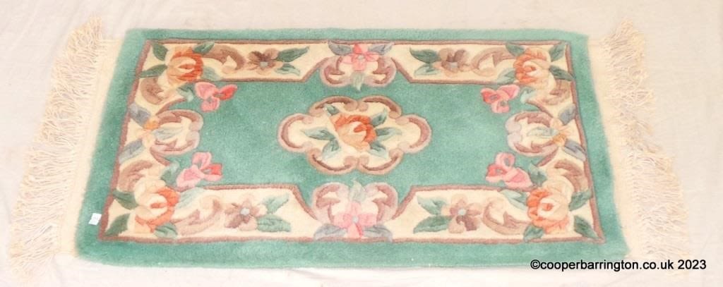 Vintage Handmade Chinese Carpet/Rug in Cream/Green/Brown/Pink. 2ft 7in x 1ft 6 in.