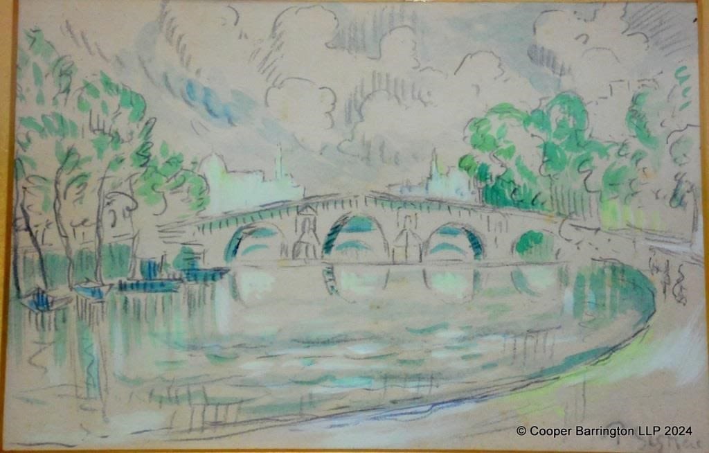 Paul Signac (French 1863-1935) Le Seine au Pont-Neuf Watercolor over Graphite. Signed lower right P Signac. Gilt framed under glass 40.5 x 33 cm.