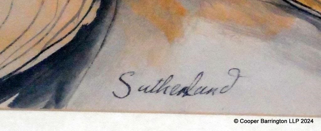 Graham Sutherland (1903 – 1980). Sunrise Watercolour. Signed Sutherland lower centre. Inscribed to back ‘Purchased by Dad in the1950s.Believed to be North Wales. Framed under glass 48 x 37 cm.