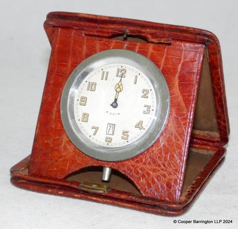 1930s Sandoz Swiss Made Travel Clock in Snakes Skin Case.