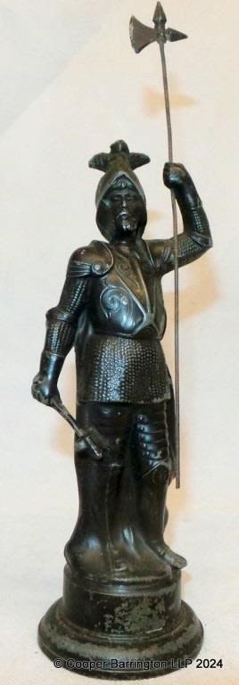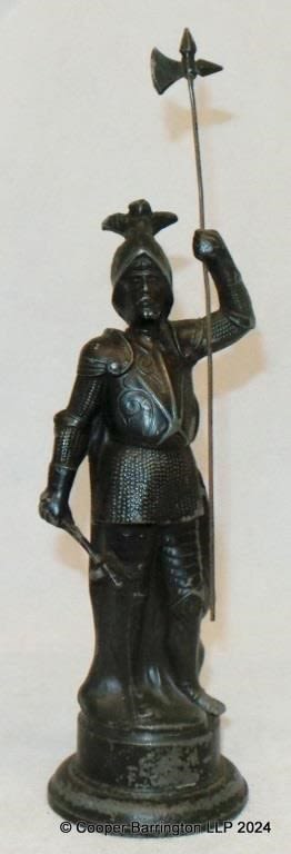 Antique Spelter Figure of a Knight Holding a Lance. early 1900s. Height 26 cm.
