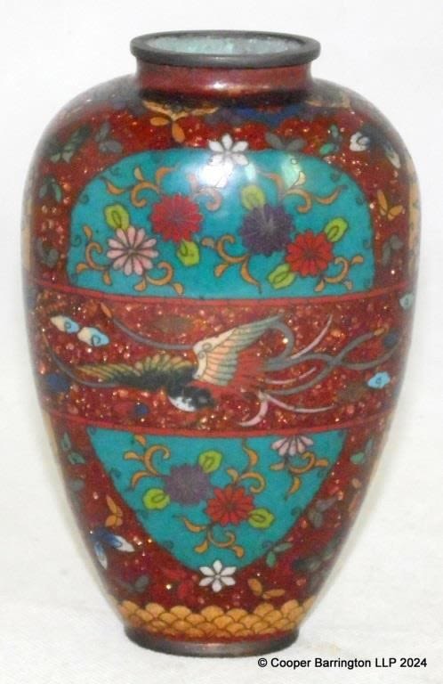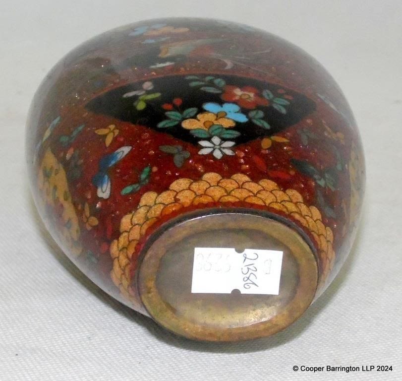 Japanese Meiji Period Oval Goldstone Cloisonné Vase. Height 15.7 cm.