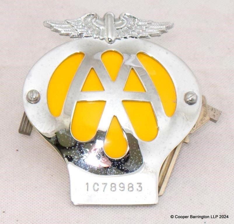 Mint AA Badge and Key. No.1C78983. Circa 1962-63. Plus one other No 5E52925. (2 Items)