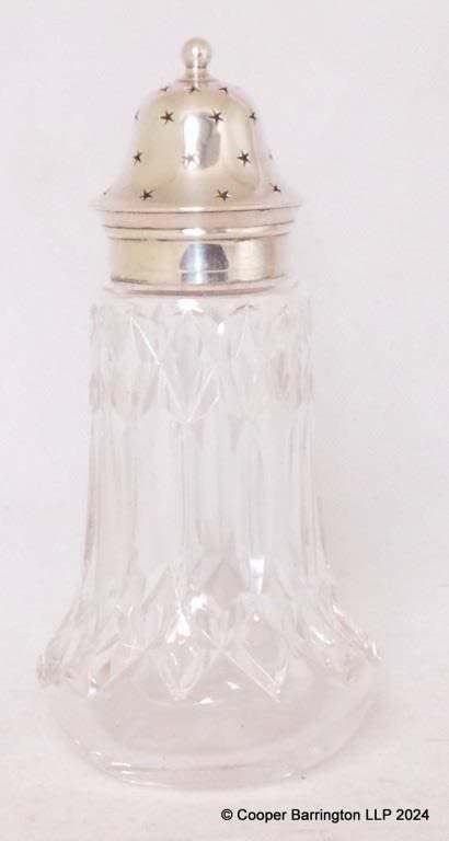 KGV Silver Topped Crystal Sugar Shaker c.1927. Hallmarked...