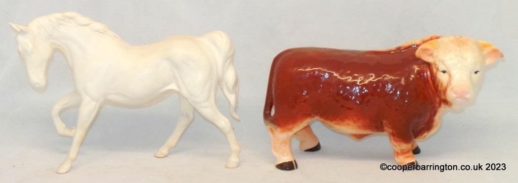 VIintage Large Melba Ware England Butcher’s Shop Display Hereford Bull. Also a Beswick Spirit of Freedom Matt White No.DA58. Only made for 7 years 1982-89. (2 items)