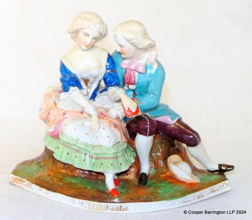 A Continental Figural Porcelain Group of Two Seated Lovers. Early 1900s. Height 19cm.
