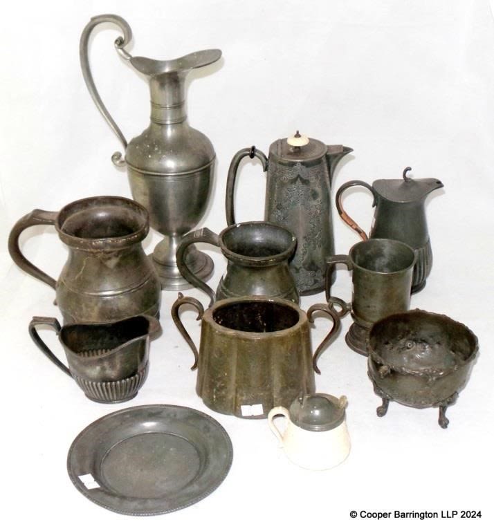 Antique Collection of Pewter to Include: 3 x Tankards. 2 x Jugs. Ewer. Coffee Pot Etc. (11 Items)