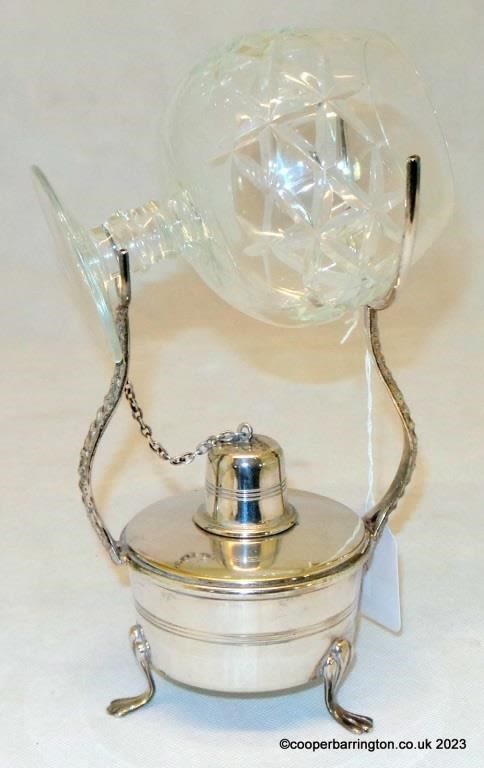 P.H. VOGEL & CO Birmingham Silver Plated Brandy Warmer with Crystal Brandy Snifter. Circa 1940’s.Marked “P.H.V. & Co. / Made in England”