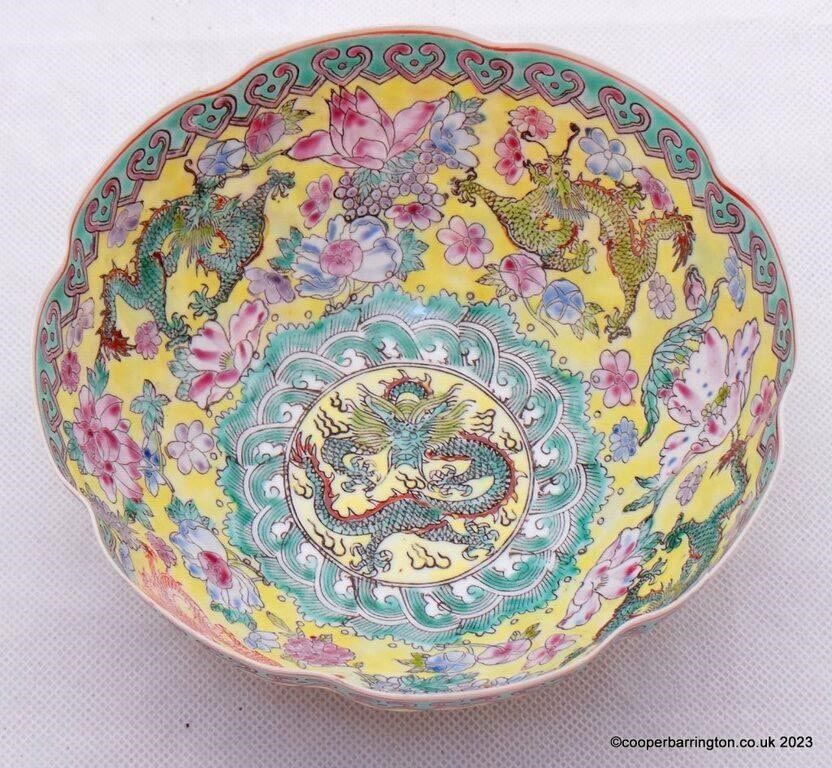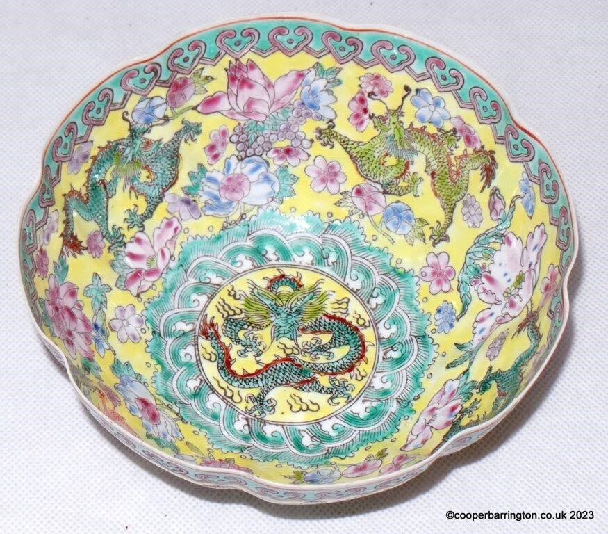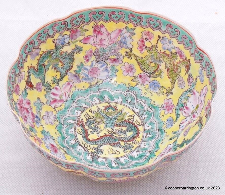 Chinese Famille Jaune Eggshell Dragon Bowl