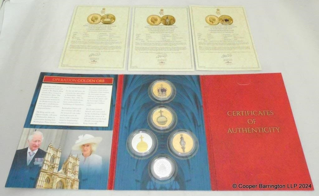 London Mint Office Coronation of King Charles lll Crowns and Half Crown in Collectors Pack. (5 Items)