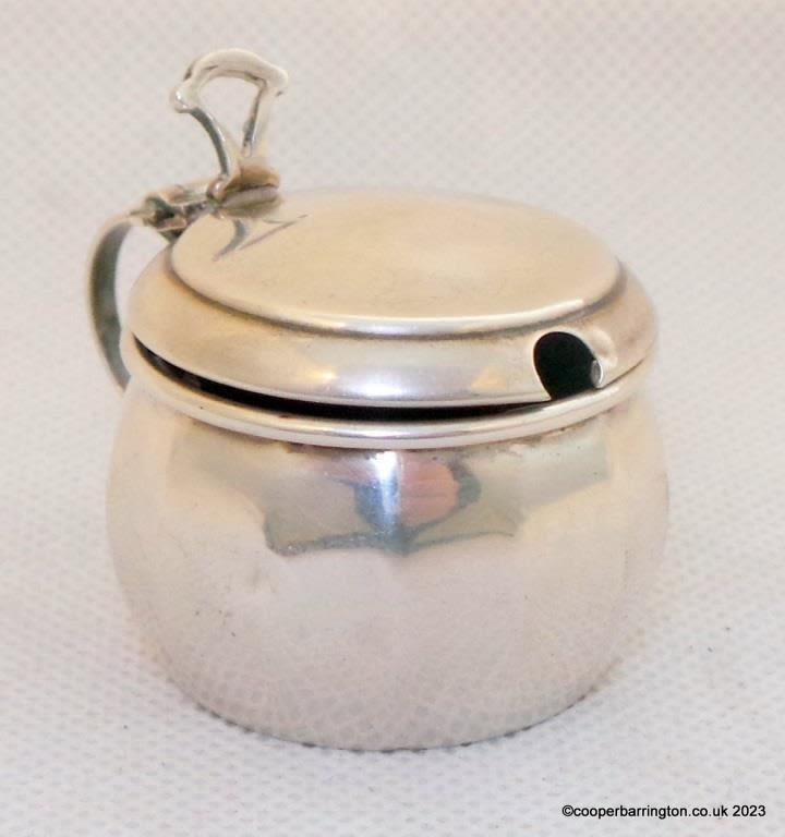 Art Deco Sterling Silver Mustard Pot by Turner & Somers. Hallmarked Birmingham 1933. Complete with blue glass liner.