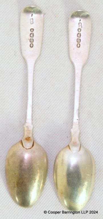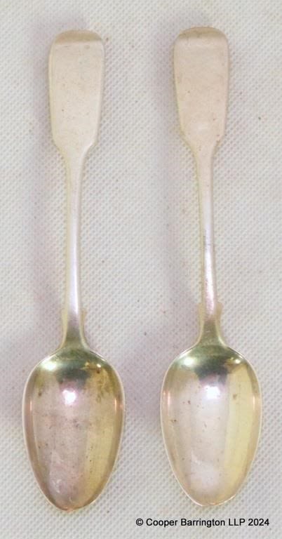 A Pair of William VI Sterling Silver Tea Spoons by William Eaton. Hallmarked London 1835. 50.6 gm. (2 Items)