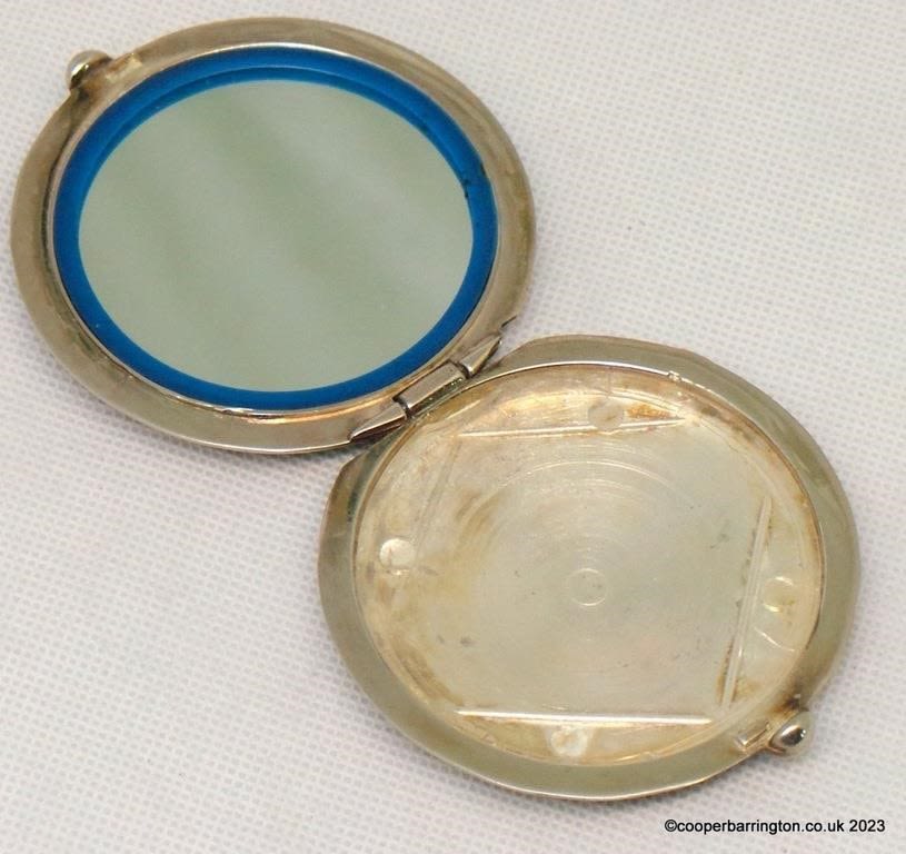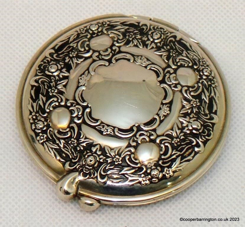 Vintage Silver Plated Repousse Mirror Powder Compact. Early 1900s. Diameter 7 cm.