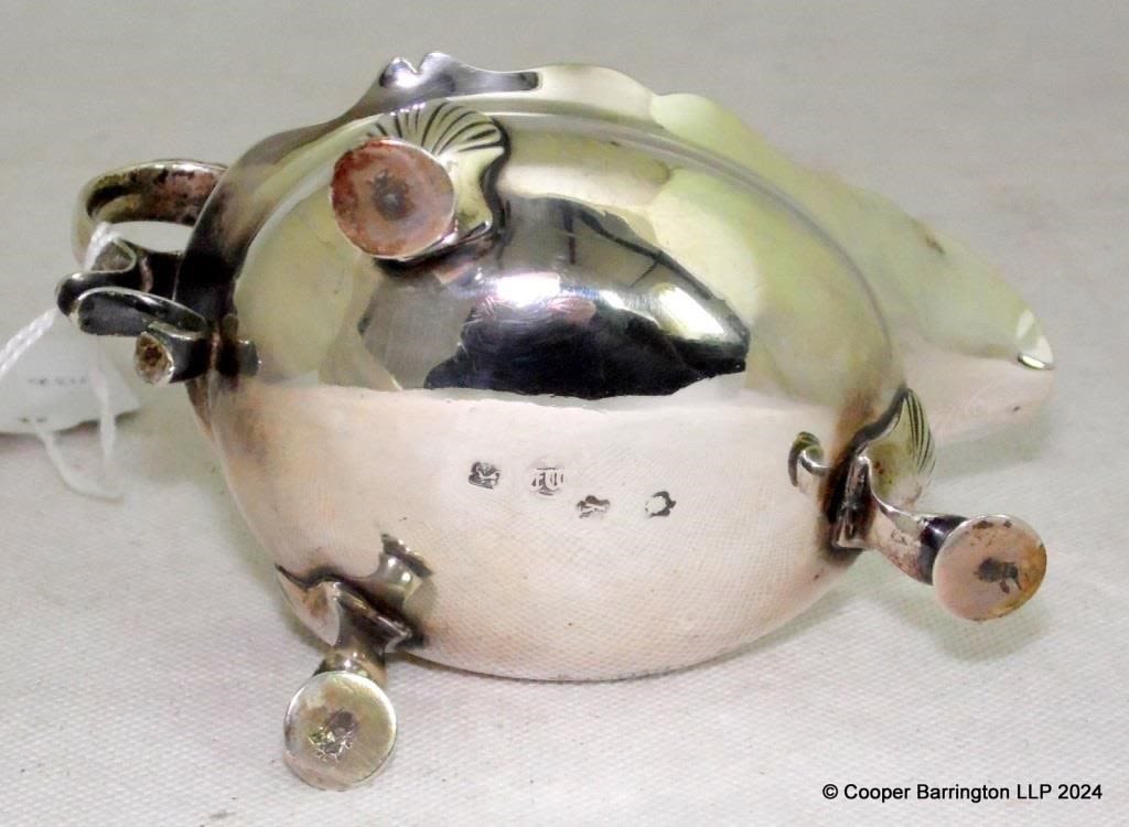 George ll Sterling Silver Cream / Milk Jug by James Wilks. Hallmarked London 1745, Engraved ob virtutem (for virtue). 115.9 gm