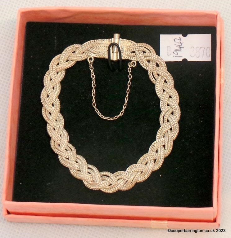 Vintage Silver Celtic Knot Woven Bracelet. Marked .925. Complete with safety chain.