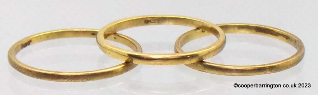 Three 9ct Yellow Gold Wedding Rings. Hallmarked .375....