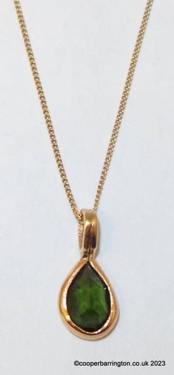 9ct Gold Peridot Pear Shape Pendant Necklace.