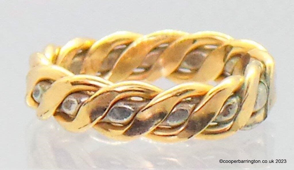 14ct Yellow Gold Filled and Sterling Silver Celtic Wedding Ring. Marked Sterling/14k Gold Filled Size H (7). 2.5 gm gross.